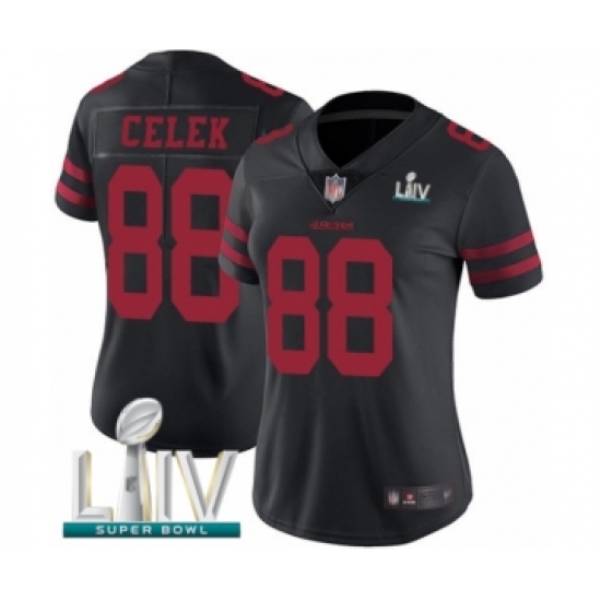 >Women's San Francisco 49ers #88 Garrett Celek Black Vapor Untouchable Limited Player Super Bowl LIV Bound Football Jersey