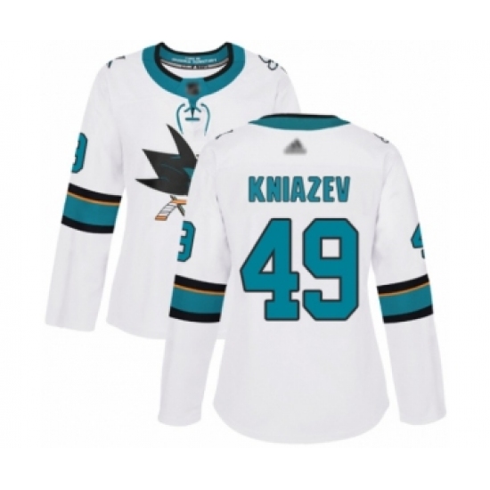 Women's San Jose Sharks #49 Artemi Kniazev Authentic White Away Hockey Jersey