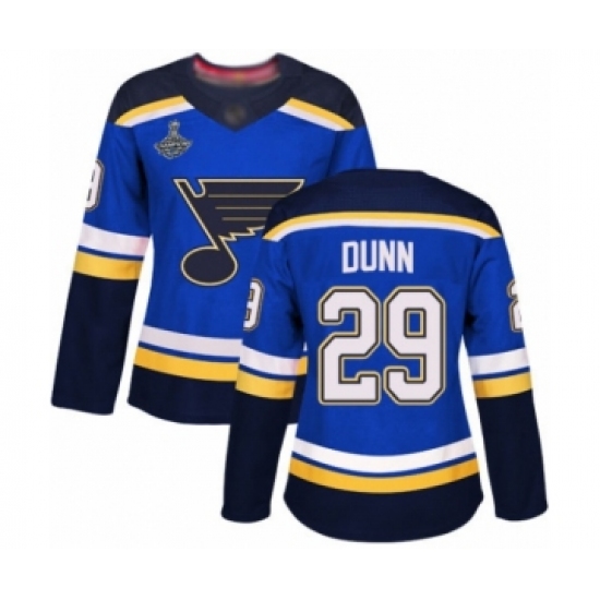 Women's St. Louis Blues #29 Vince Dunn Authentic Royal Blue Home 2019 Stanley Cup Champions Hockey Jersey