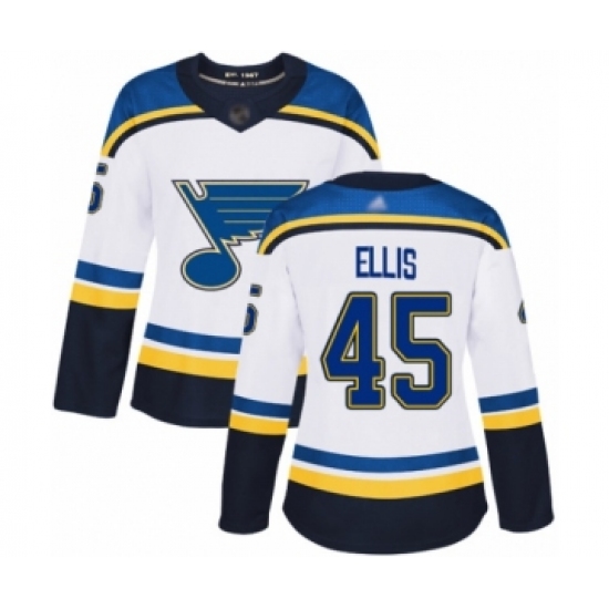 Women's St. Louis Blues #45 Colten Ellis Authentic White Away Hockey Jersey