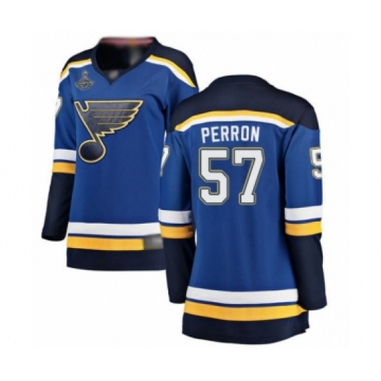 Women's St. Louis Blues #57 David Perron Fanatics Branded Royal Blue Home Breakaway 2019 Stanley Cup Champions Hockey Jersey