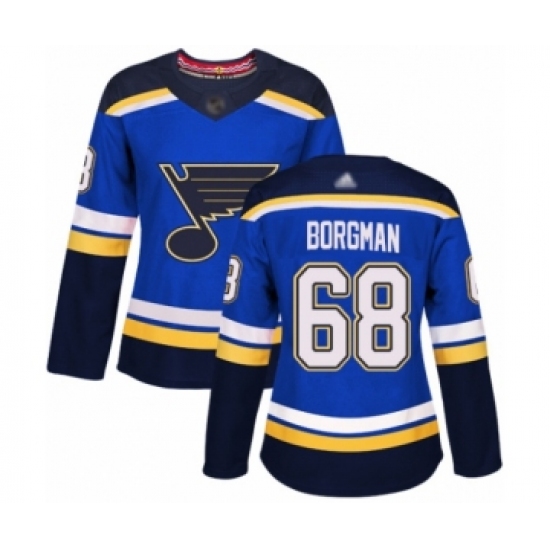 Women's St. Louis Blues #68 Andreas Borgman Authentic Royal Blue Home Hockey Jersey