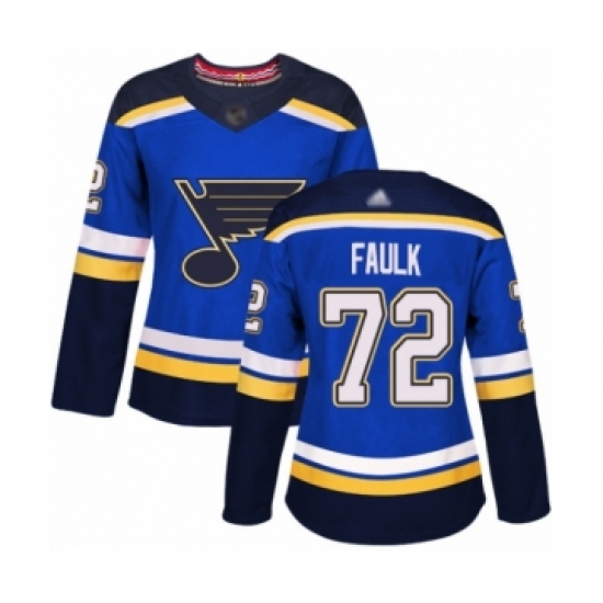 >Women's St. Louis Blues #72 Justin Faulk Authentic Royal Blue Home Hockey Jersey