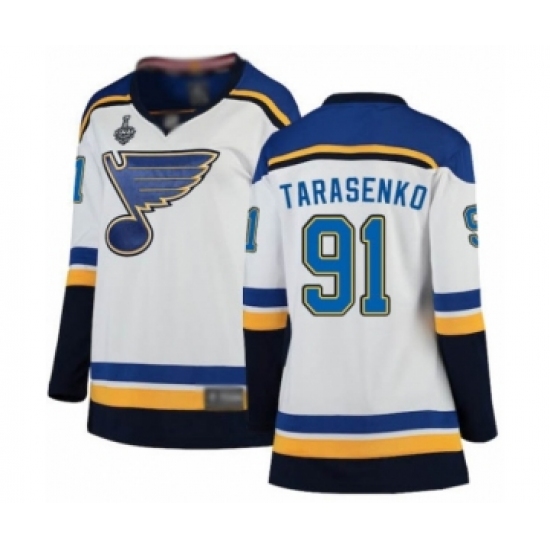 Women's St. Louis Blues #91 Vladimir Tarasenko Fanatics Branded White Away Breakaway 2019 Stanley Cup Final Bound Hockey Jersey