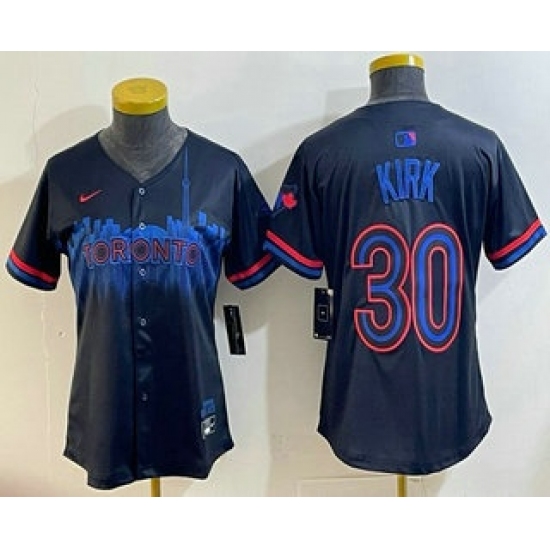 >Women's Toronto Blue Jays #30 Alejandro Kirk Black 2024 City Connect Limited Stitched Jersey