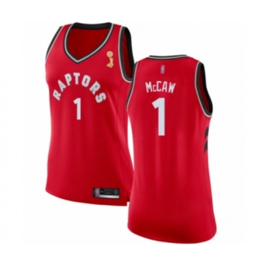 Women's Toronto Raptors #1 Patrick McCaw Swingman Red 2019 Basketball Finals Champions Jersey - Icon Edition