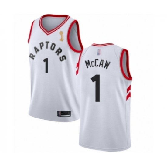 Women's Toronto Raptors #1 Patrick McCaw Swingman White 2019 Basketball Finals Champions Jersey - Association Edition