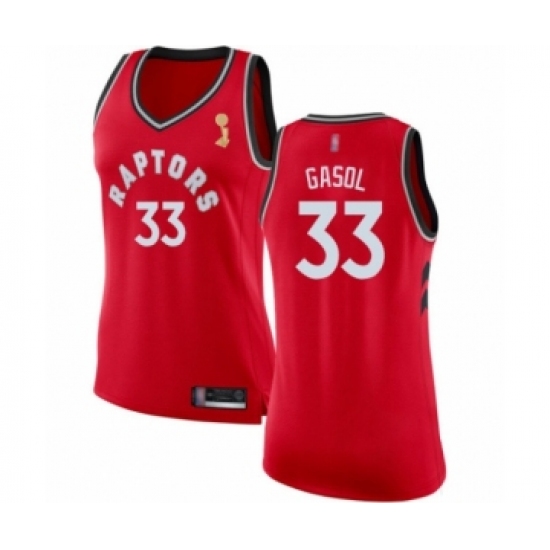 Women's Toronto Raptors #33 Marc Gasol Swingman Red 2019 Basketball Finals Champions Jersey - Icon Edition