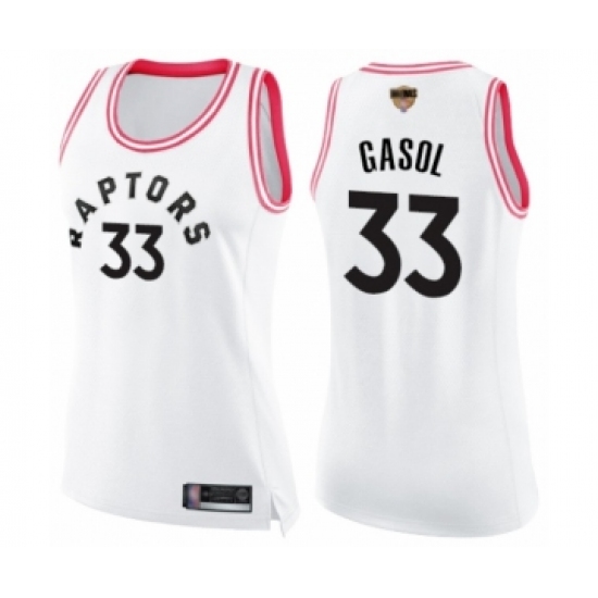 Women's Toronto Raptors #33 Marc Gasol Swingman White Pink Fashion 2019 Basketball Finals Bound Jersey