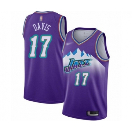 Men's Utah Jazz #17 Ed Davis Authentic Purple Hardwood Classics Basketball Jersey