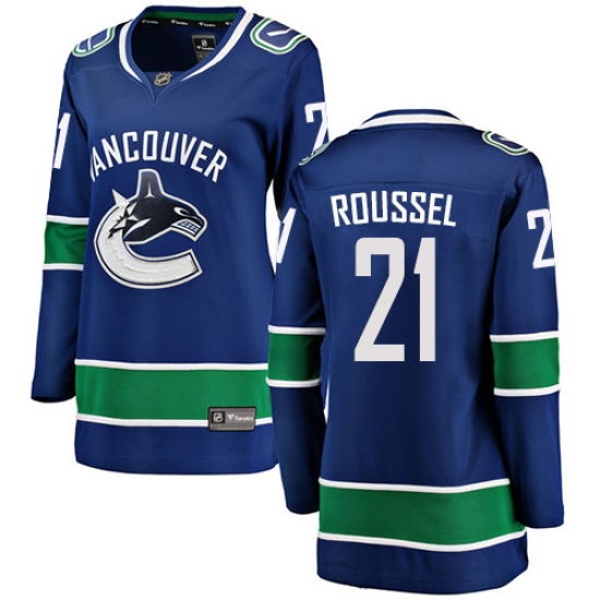 >Women's Vancouver Canucks #21 Antoine Roussel Fanatics Branded Blue Home Breakaway NHL Jersey