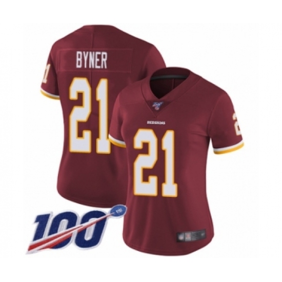 Women's Washington Redskins #21 Earnest Byner Burgundy Red Team Color Vapor Untouchable Limited Player 100th Season Football Jersey