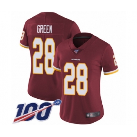 >Women's Washington Redskins #28 Darrell Green Burgundy Red Team Color Vapor Untouchable Limited Player 100th Season Football Jersey