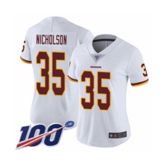 >Women's Washington Redskins #35 Montae Nicholson White Vapor Untouchable Limited Player 100th Season Football Jersey