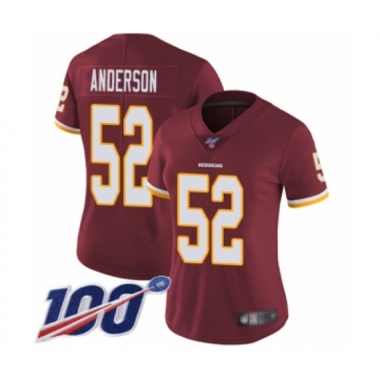 >Women's Washington Redskins #52 Ryan Anderson Burgundy Red Team Color Vapor Untouchable Limited Player 100th Season Football Jersey