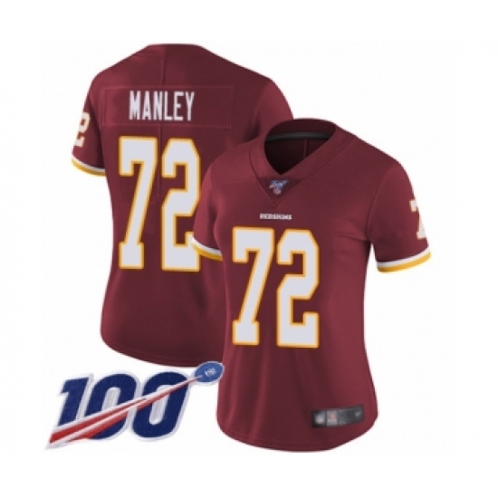Women's Washington Redskins #72 Dexter Manley Burgundy Red Team Color Vapor Untouchable Limited Player 100th Season Football Jersey