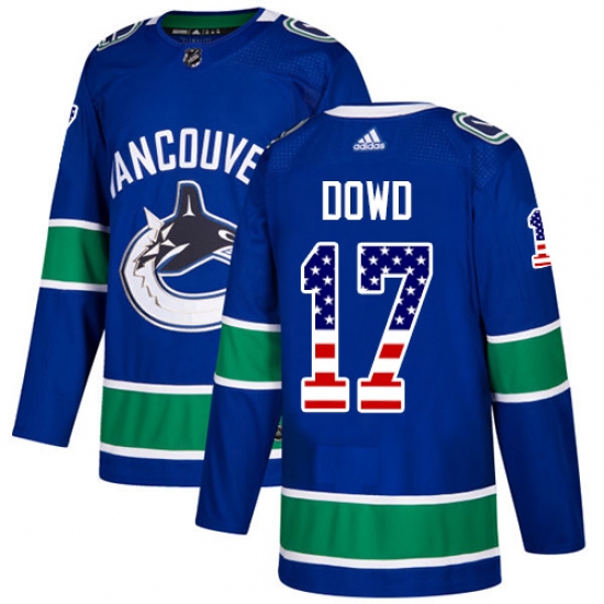 Youth Adidas Vancouver Canucks #17 Nic Dowd Authentic Blue USA Flag Fashion NHL Jersey