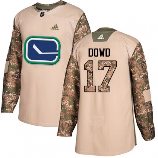 Men's Adidas Vancouver Canucks #17 Nic Dowd Authentic Camo Veterans Day Practice NHL Jersey