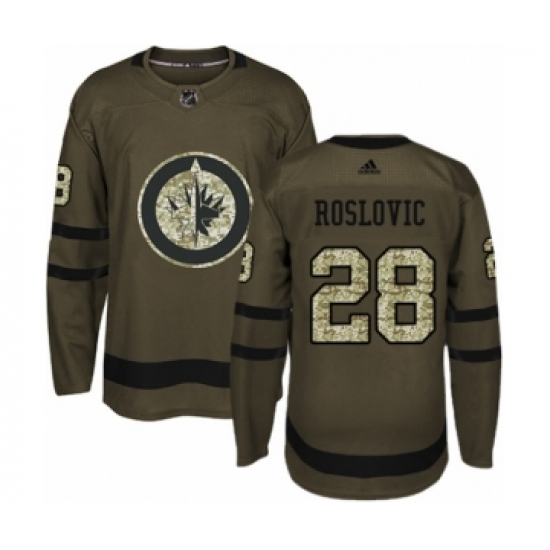 >Youth Adidas Winnipeg Jets #28 Jack Roslovic Authentic Green Salute to Service NHL Jersey
