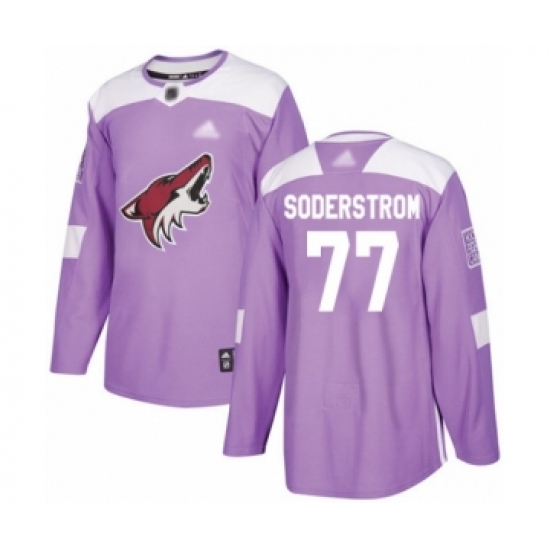 >Youth Arizona Coyotes #77 Victor Soderstrom Authentic Purple Fights Cancer Practice Hockey Jersey