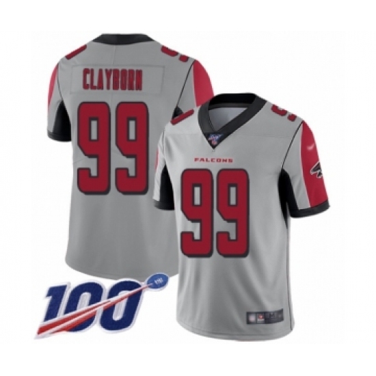>Youth Atlanta Falcons #99 Adrian Clayborn Limited Silver Inverted Legend 100th Season Football Jersey