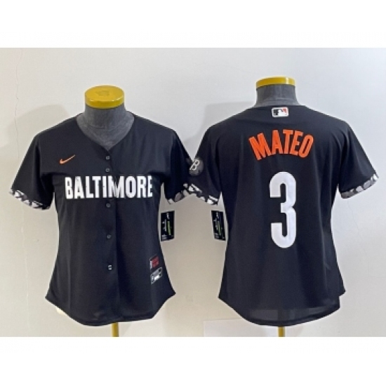 Women's Baltimore Orioles #3 Jorge Mateo Black 2023 City Connect Cool Base Stitched Jersey