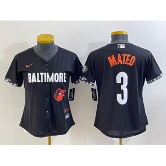 Women's Baltimore Orioles #3 Jorge Mateo Number Black 2023 City Connect Cool Base Stitched Jersey