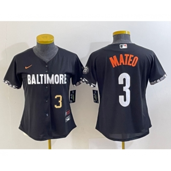 Women's Baltimore Orioles #3 Jorge Mateo Number Black 2023 City Connect Cool Base Stitched Jersey 1