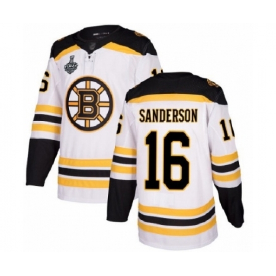 Youth Boston Bruins #16 Derek Sanderson Authentic White Away 2019 Stanley Cup Final Bound Hockey Jersey