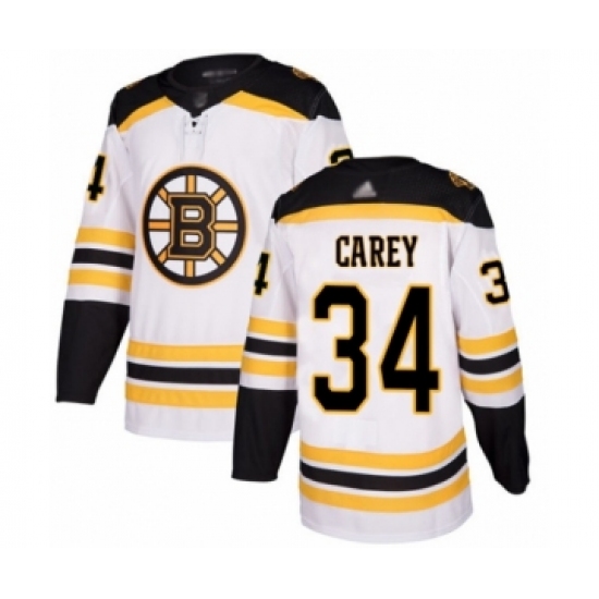 >Youth Boston Bruins #34 Paul Carey Authentic White Away Hockey Jersey