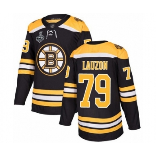 >Youth Boston Bruins #79 Jeremy Lauzon Authentic Black Home 2019 Stanley Cup Final Bound Hockey Jersey