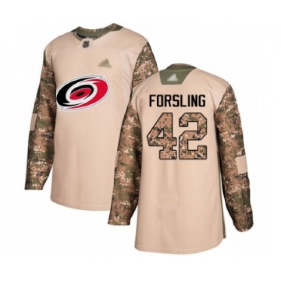 >Youth Carolina Hurricanes #42 Gustav Forsling Authentic Camo Veterans Day Practice Hockey Jersey
