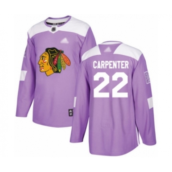 >Youth Chicago Blackhawks #22 Ryan Carpenter Authentic Purple Fights Cancer Practice Hockey Jersey