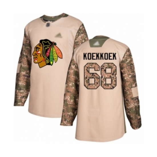 >Youth Chicago Blackhawks #68 Slater Koekkoek Authentic Camo Veterans Day Practice Hockey Jersey