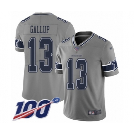 Men's Dallas Cowboys #13 Michael Gallup Limited Gray Inverted Legend 100th Season Football Jersey