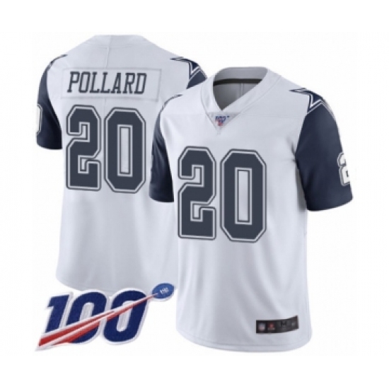 >Youth Dallas Cowboys #20 Tony Pollard Limited White Rush Vapor Untouchable 100th Season Football Jersey