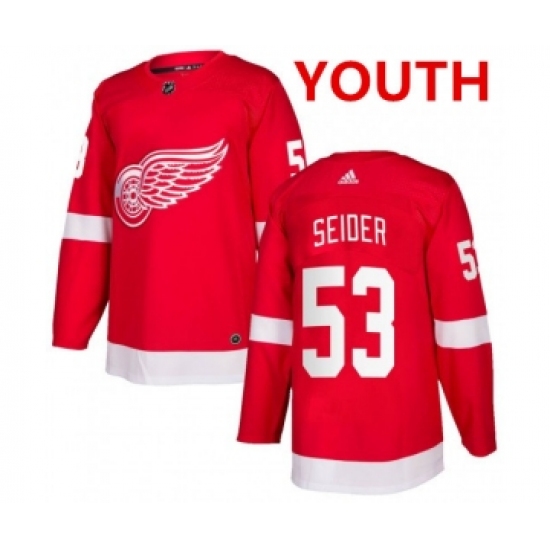 >Youth Detroit Red Wings #53 Moritz Seider Red Home Hockey Stitched NHL Jersey