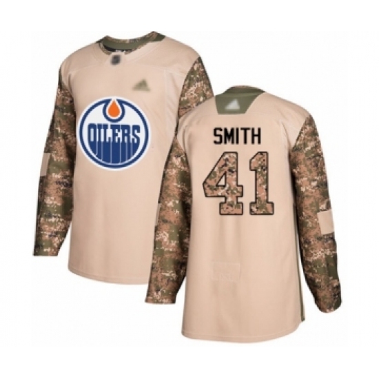 Men's Edmonton Oilers #41 Mike Smith Authentic Camo Veterans Day Practice Hockey Jersey
