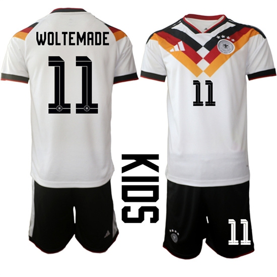 Youth Germany #11 WOLTEMADE National Team FIFA x World Cup 2026 Home White On Field Kids Jersey