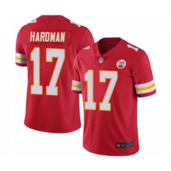 >Youth Kansas City Chiefs #17 Mecole Hardman Red Team Color Vapor Untouchable Limited Player Football Jersey