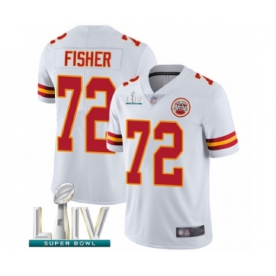 >Youth Kansas City Chiefs #72 Eric Fisher White Vapor Untouchable Limited Player Super Bowl LIV Bound Football Jersey