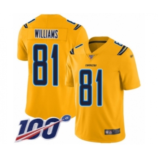 Youth Los Angeles Chargers #81 Mike Williams Limited Gold Inverted Legend 100th Season Football Jersey