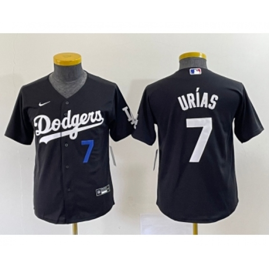 >Youth Los Angeles Dodgers #7 Julio Urias Number Black Turn Back The Clock Stitched Cool Base Jersey1