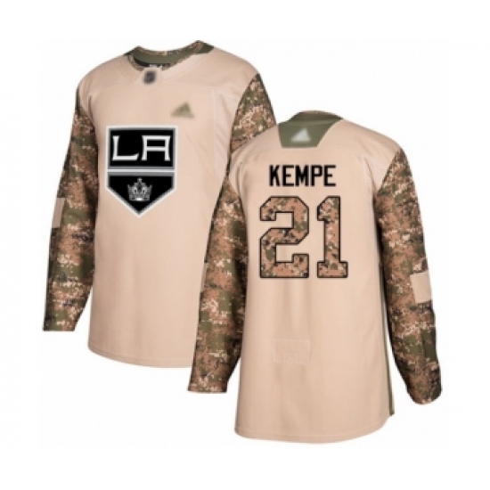 >Youth Los Angeles Kings #21 Mario Kempe Authentic Camo Veterans Day Practice Hockey Jersey