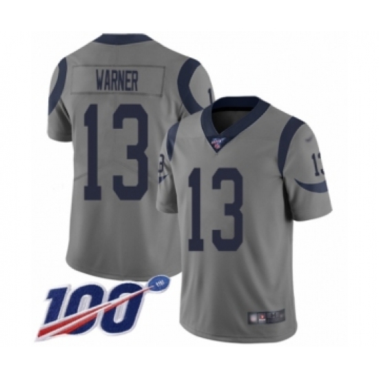 >Youth Los Angeles Rams #13 Kurt Warner Limited Gray Inverted Legend 100th Season Football Jersey