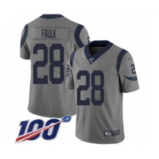 Men's Los Angeles Rams #28 Marshall Faulk Limited Gray Inverted Legend 100th Season Football Jersey