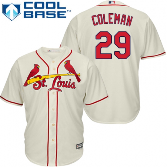 Home>MLB>St. Louis Cardinals>Vince Coleman>Youth Majestic St. Louis Cardinals #29 Vince Coleman Authentic Cream Alternate Cool Base MLB Jersey