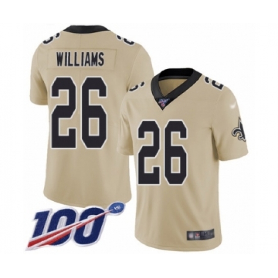 >Youth New Orleans Saints #26 P.J. Williams Limited Gold Inverted Legend 100th Season Football Jersey