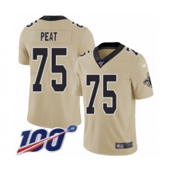 >Youth New Orleans Saints #75 Andrus Peat Limited Gold Inverted Legend 100th Season Football Jersey