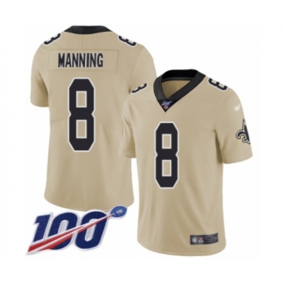 Youth New Orleans Saints #8 Archie Manning Limited Gold Inverted Legend 100th Season Football Jersey